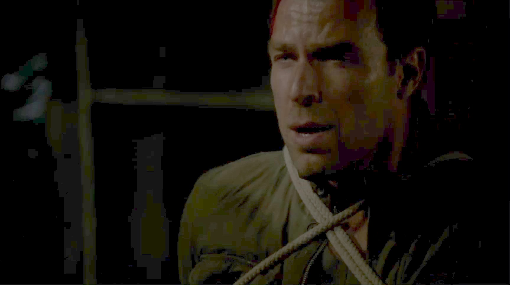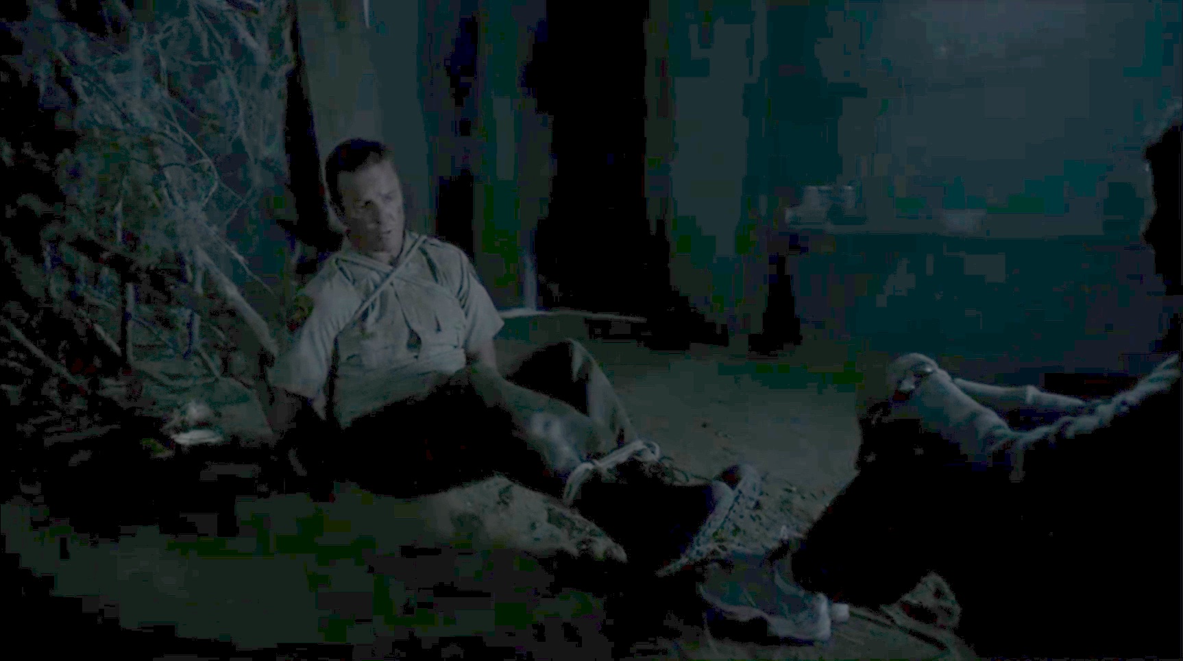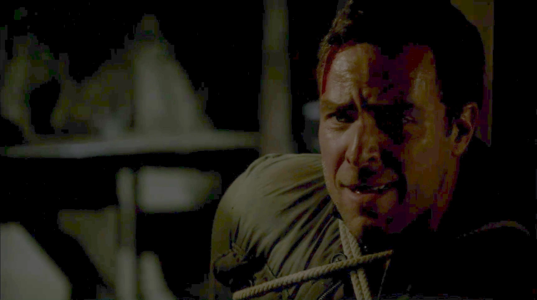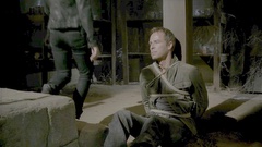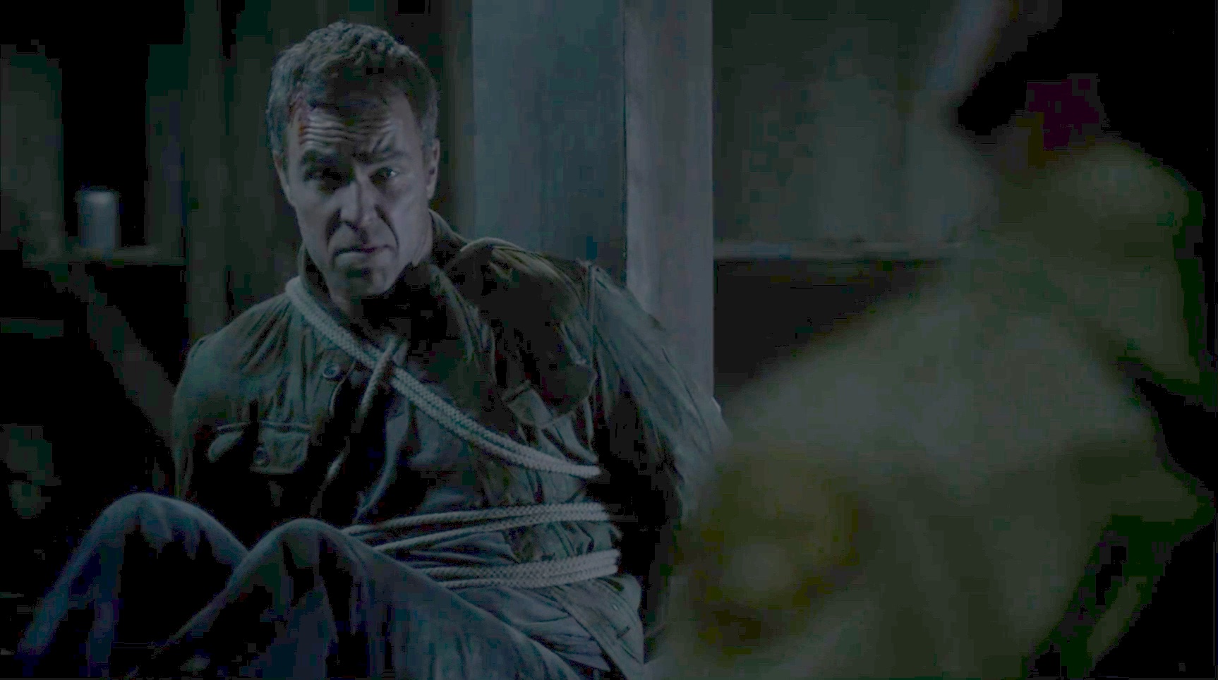 Chris Argent (Bourne) and Noah Stilinski (Ashby) find themselves tied up in the root cellar.