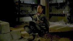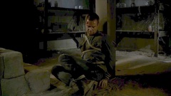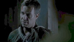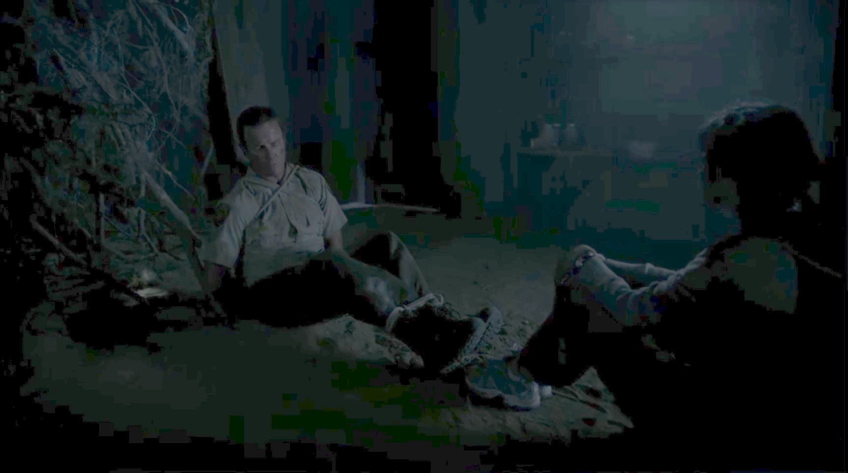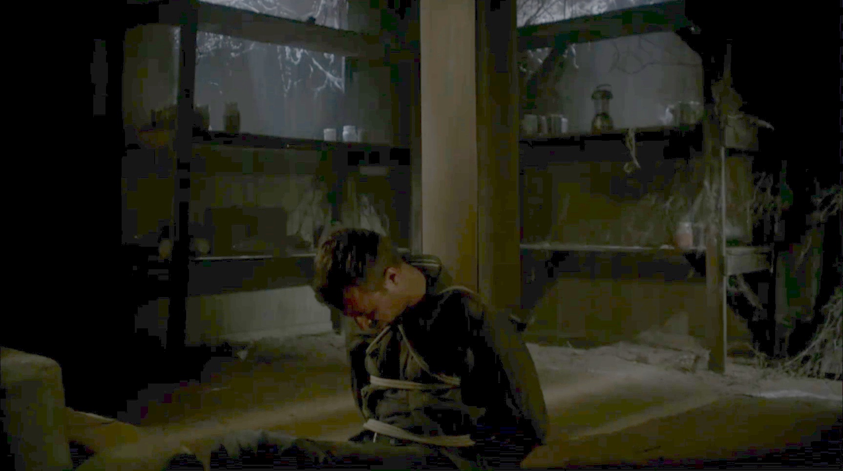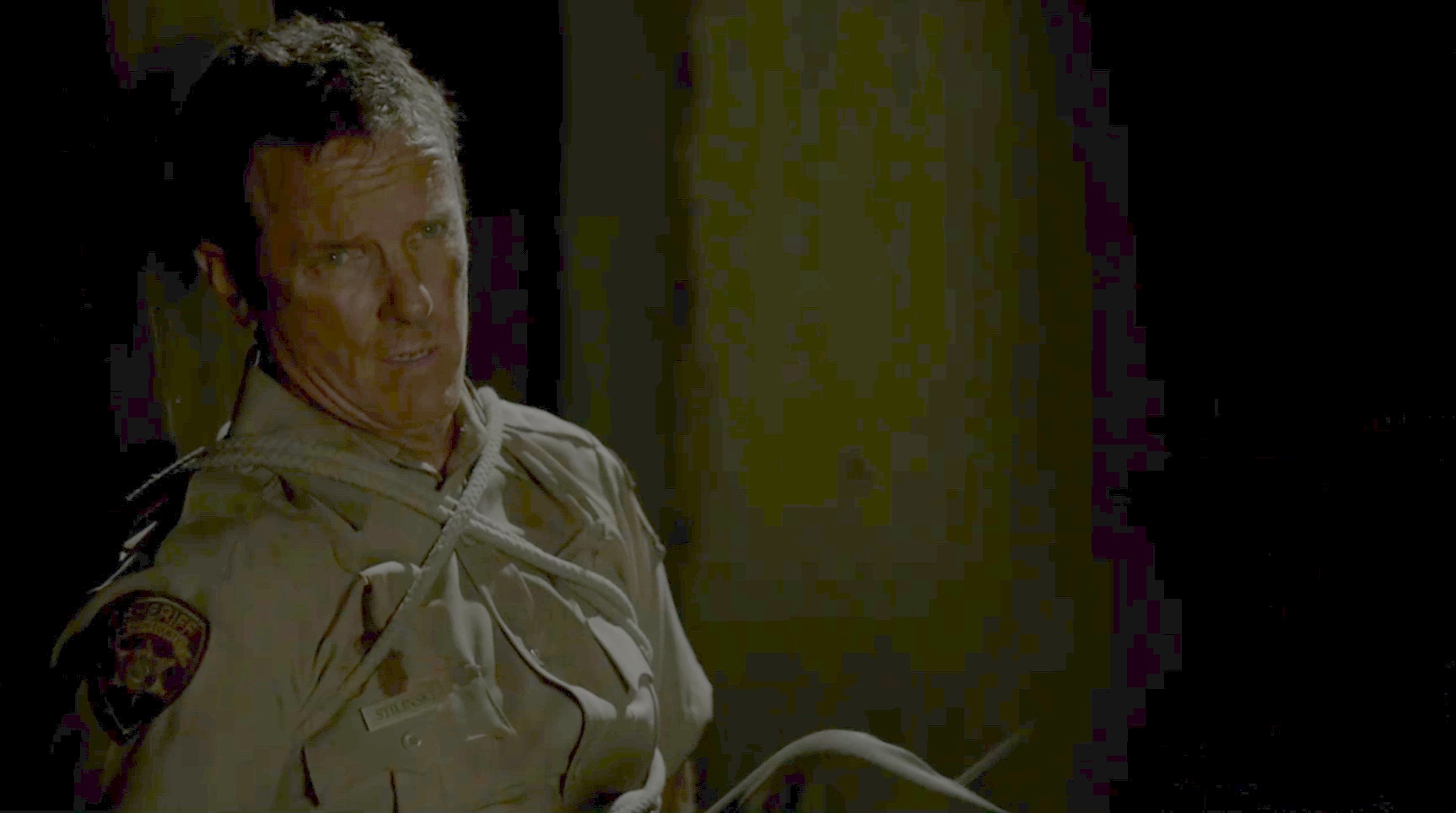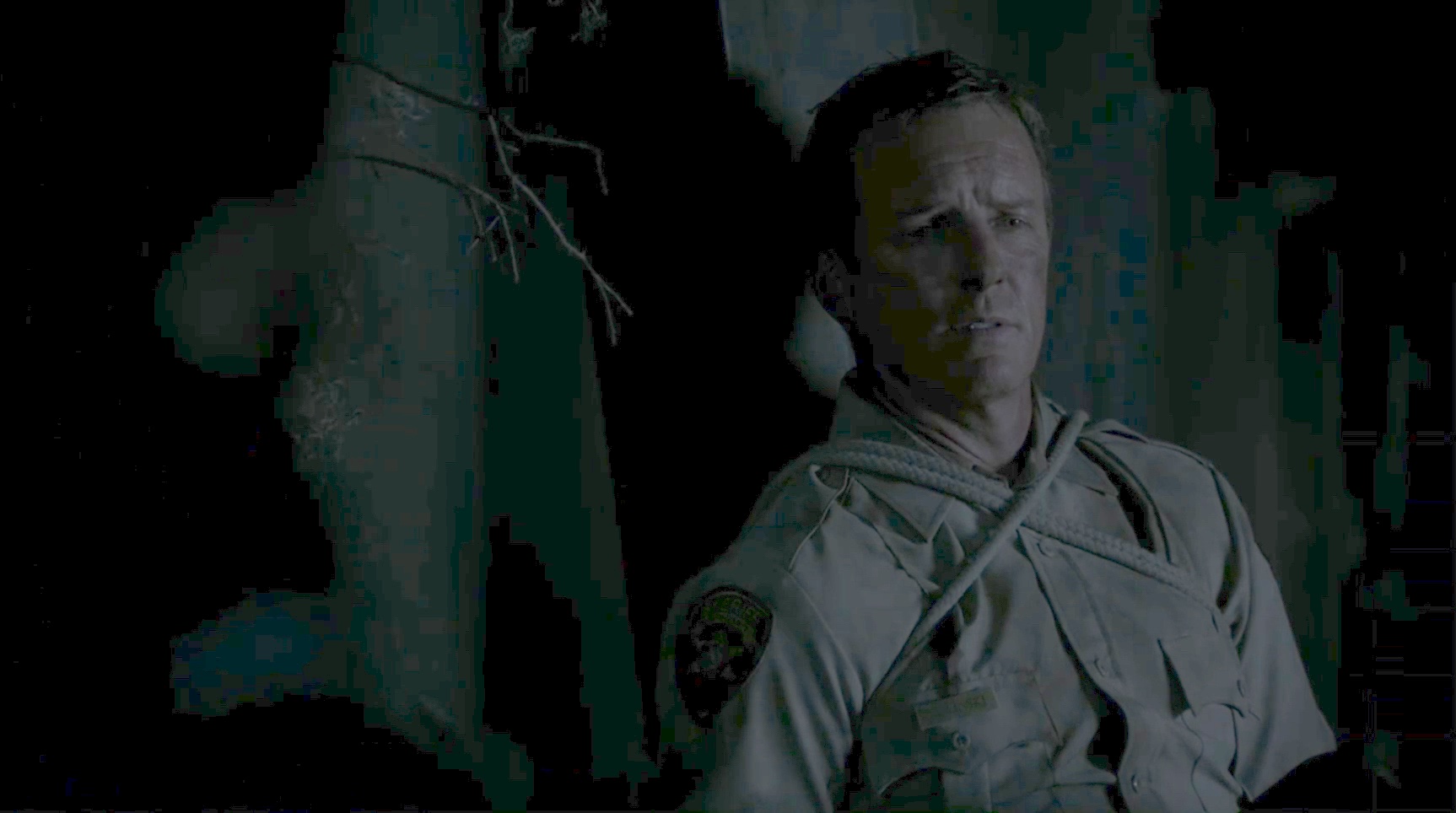 Chris Argent (Bourne) and Noah Stilinski (Ashby) find themselves tied up in the root cellar.