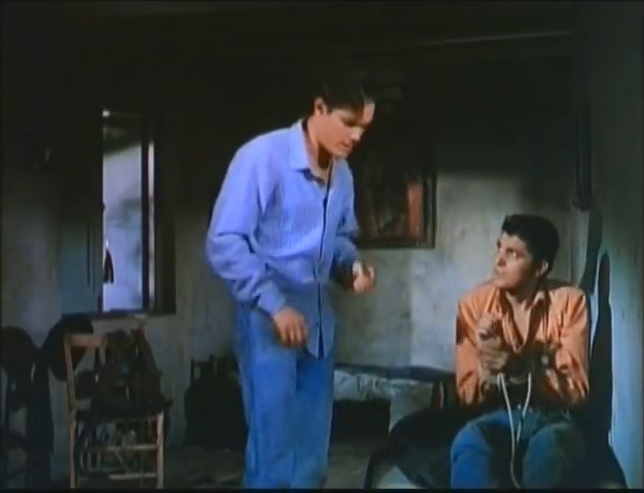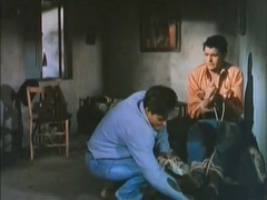 One friend ties up another to keep him from absconding with a stolen payroll.