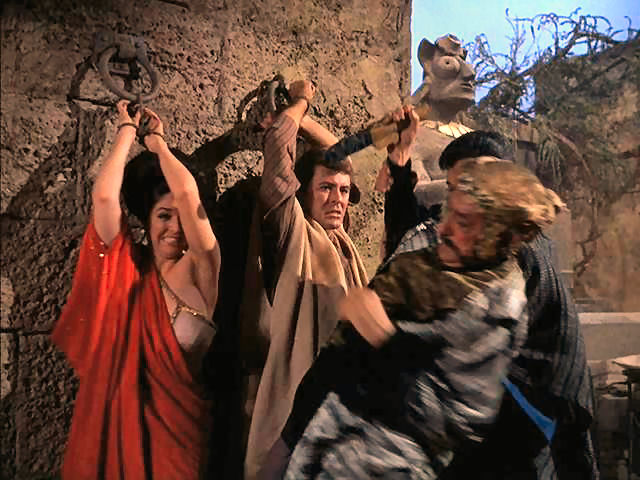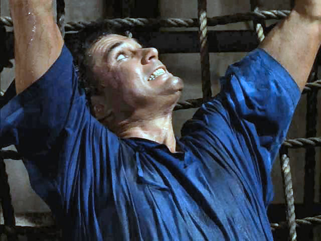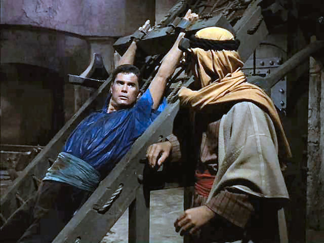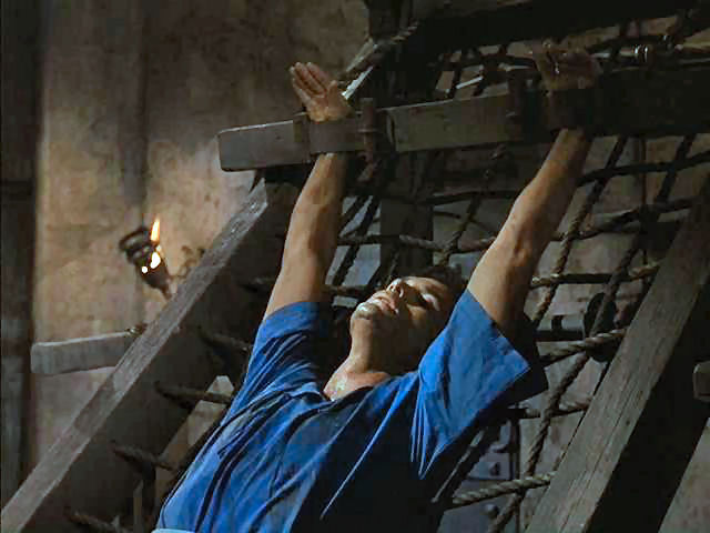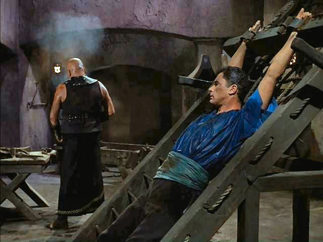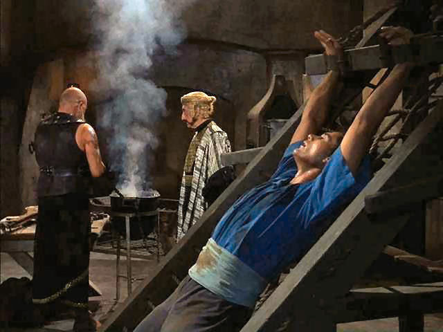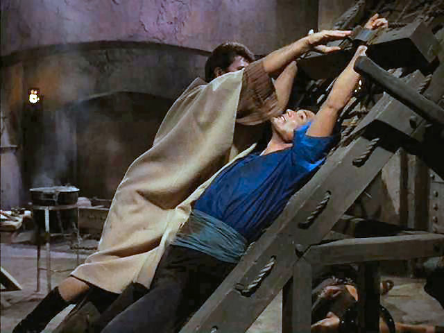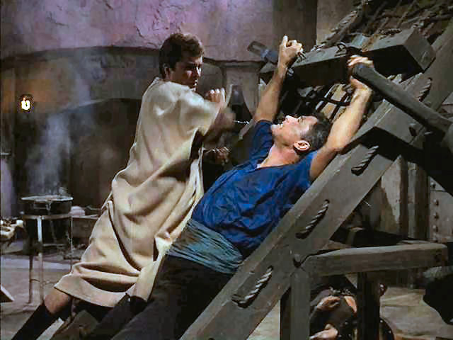 Tony rescues Doug from the rack; later, Tony's tied to the walls of Jericho as they come a-tumblin' down.