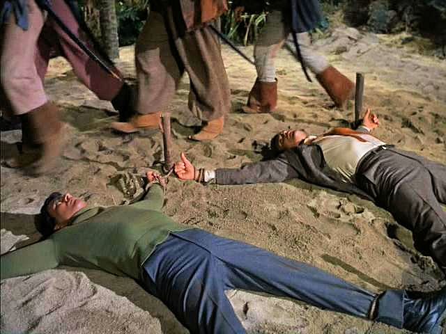 Doug and Tony are captured by pirates, who stake them out with the tide coming in, as the Americans begin their attack on the pirates.