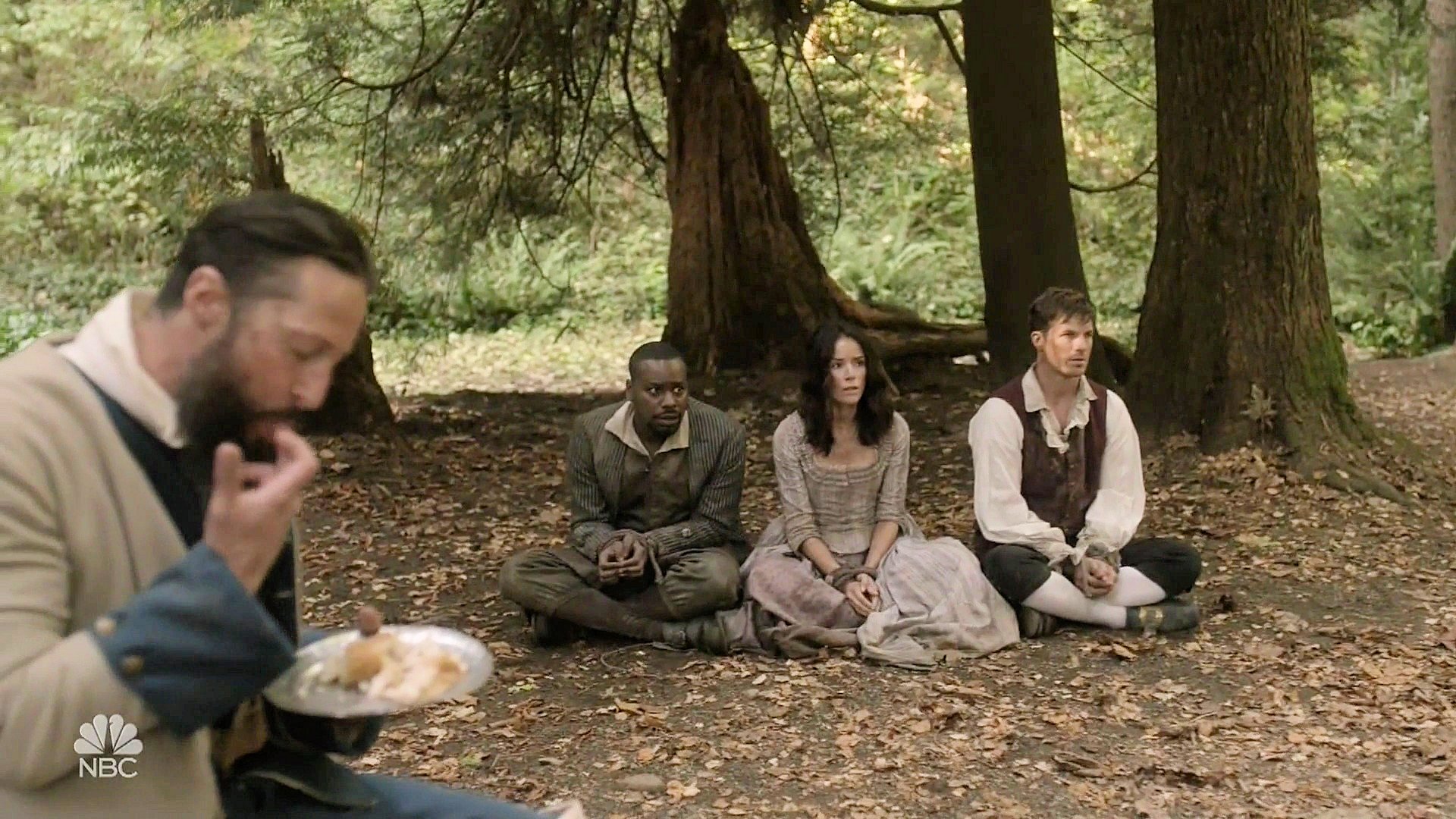 In colonial America, the crew are captured by French soldiers and then kidnapped by the Shawnee.