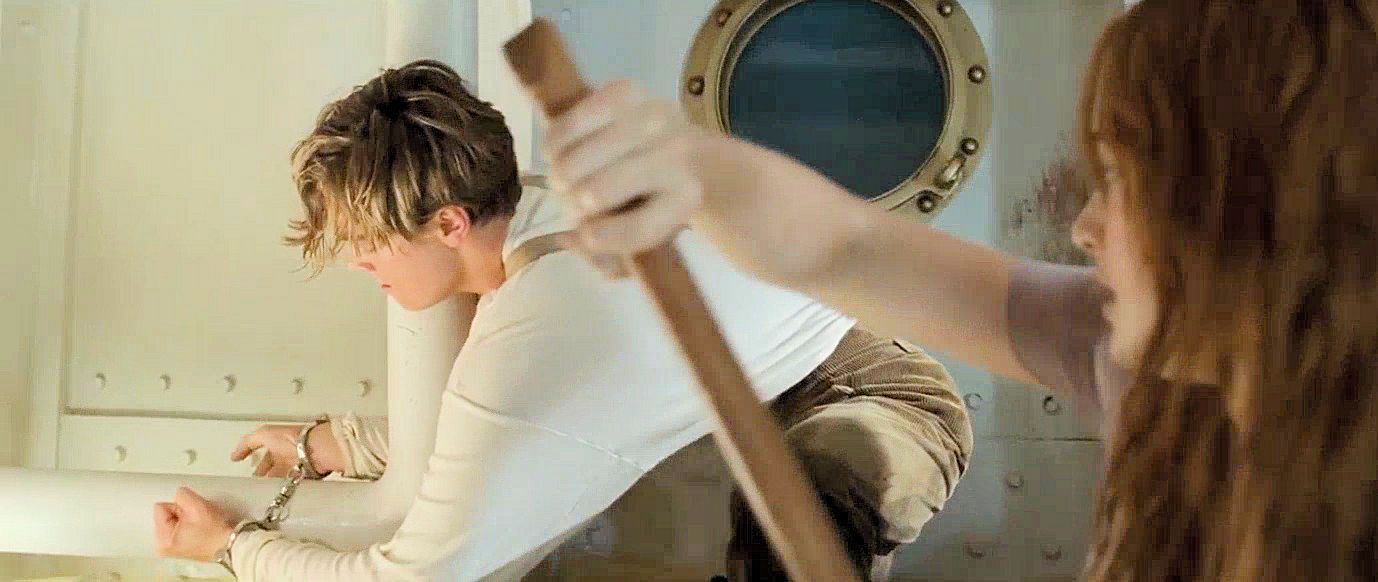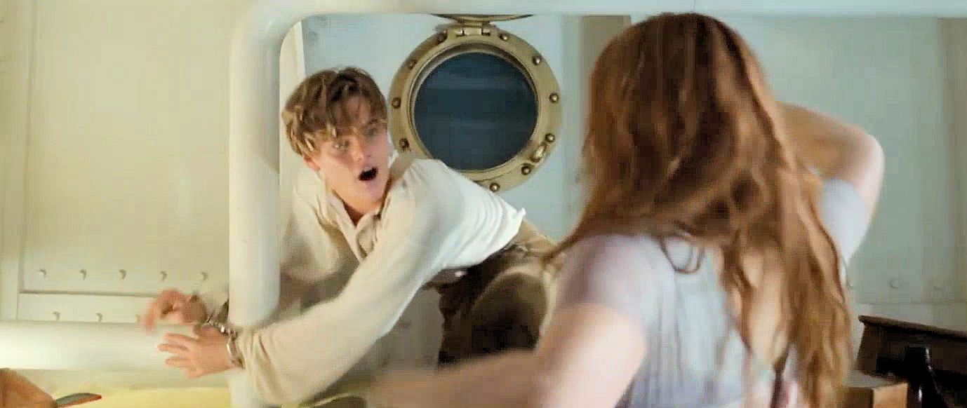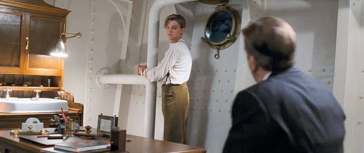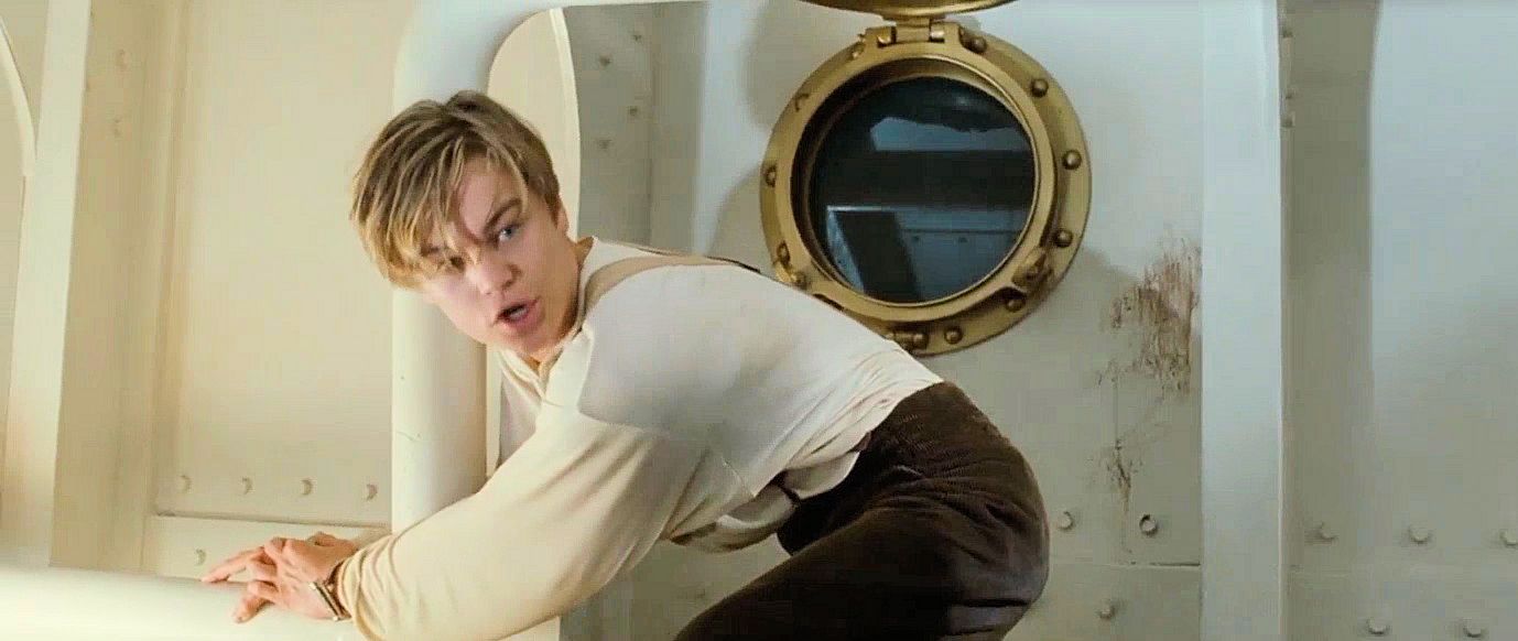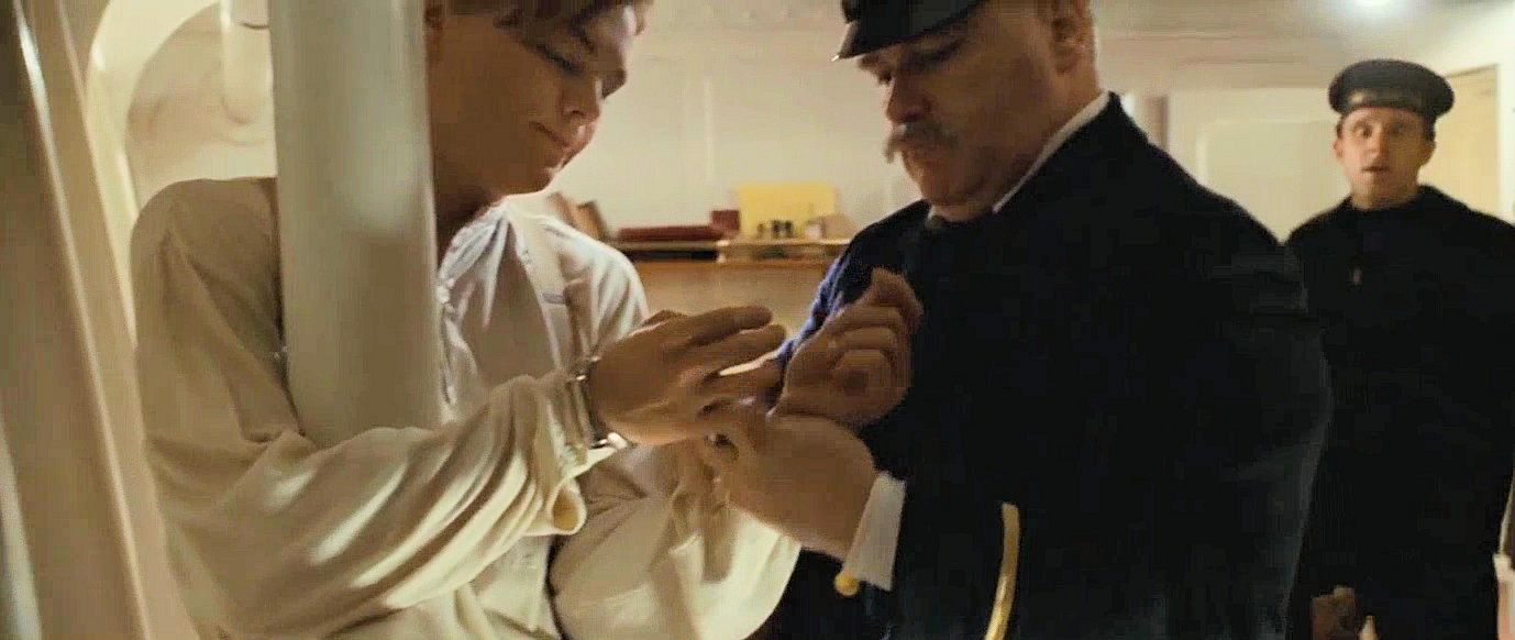 DiCaprio is accused of theft and handcuffed to a pipe on the doomed ship.