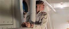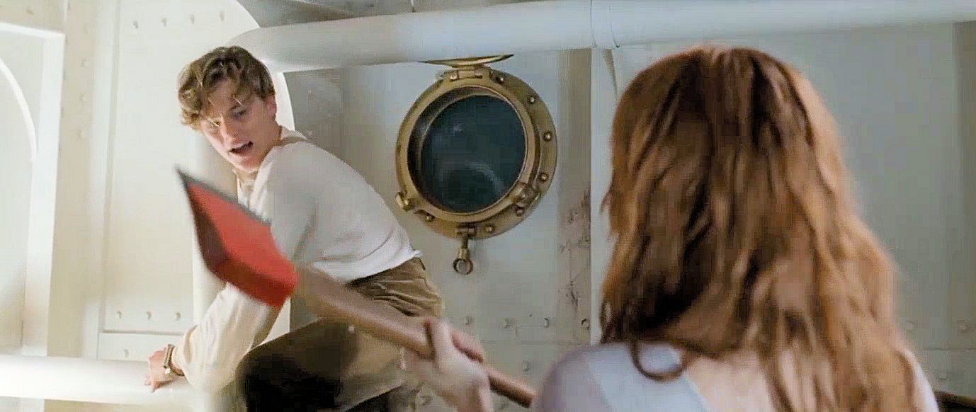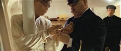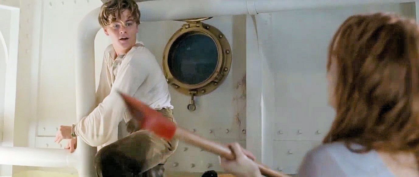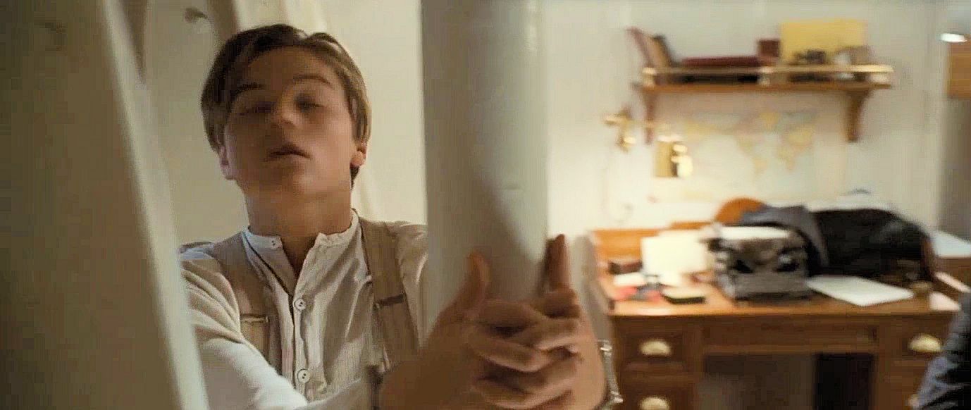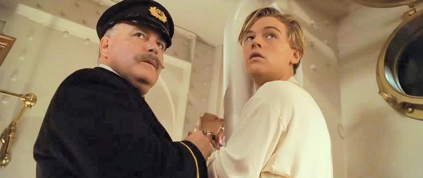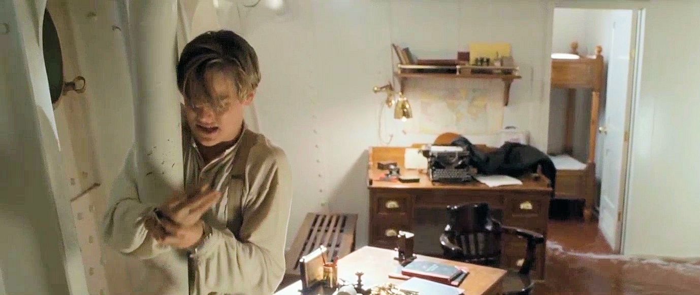 DiCaprio is accused of theft and handcuffed to a pipe on the doomed ship.