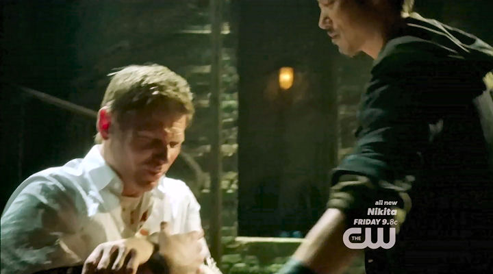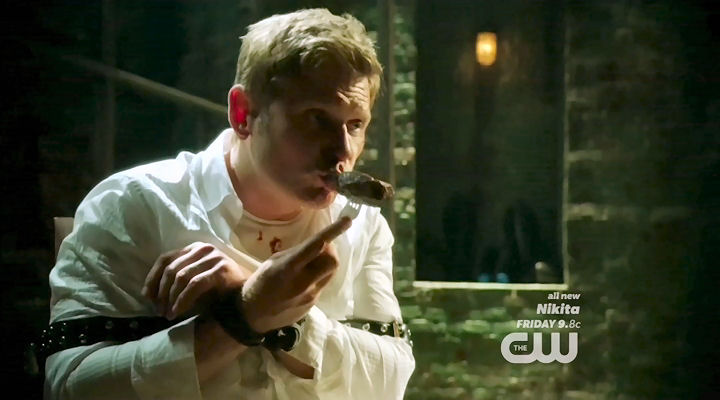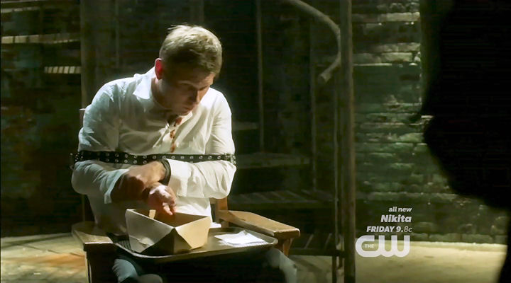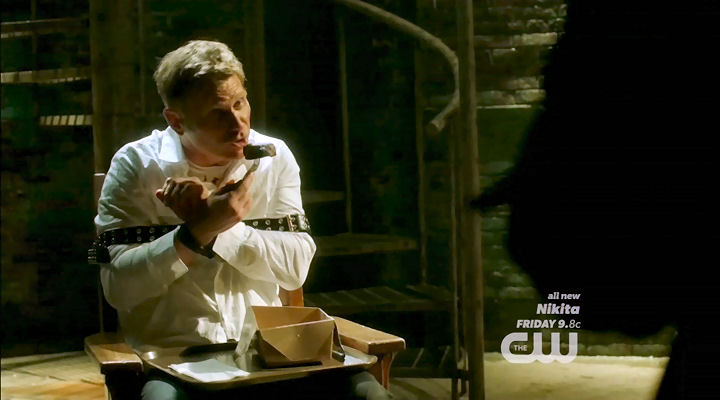 In a flashback, we see Jedikiah try to talk John out of being a test subject in an experiment. Then the gang captures and interrogates Jedikiah.