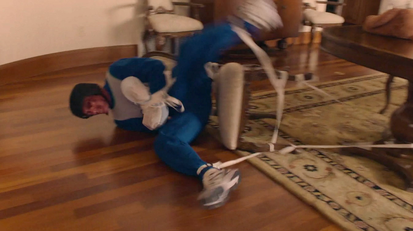 Developmentally challenged Johnny Horne has been tied to a chair after injuring himself, and so is unable to help when his nephew Richard attacks and robs Sylvia.