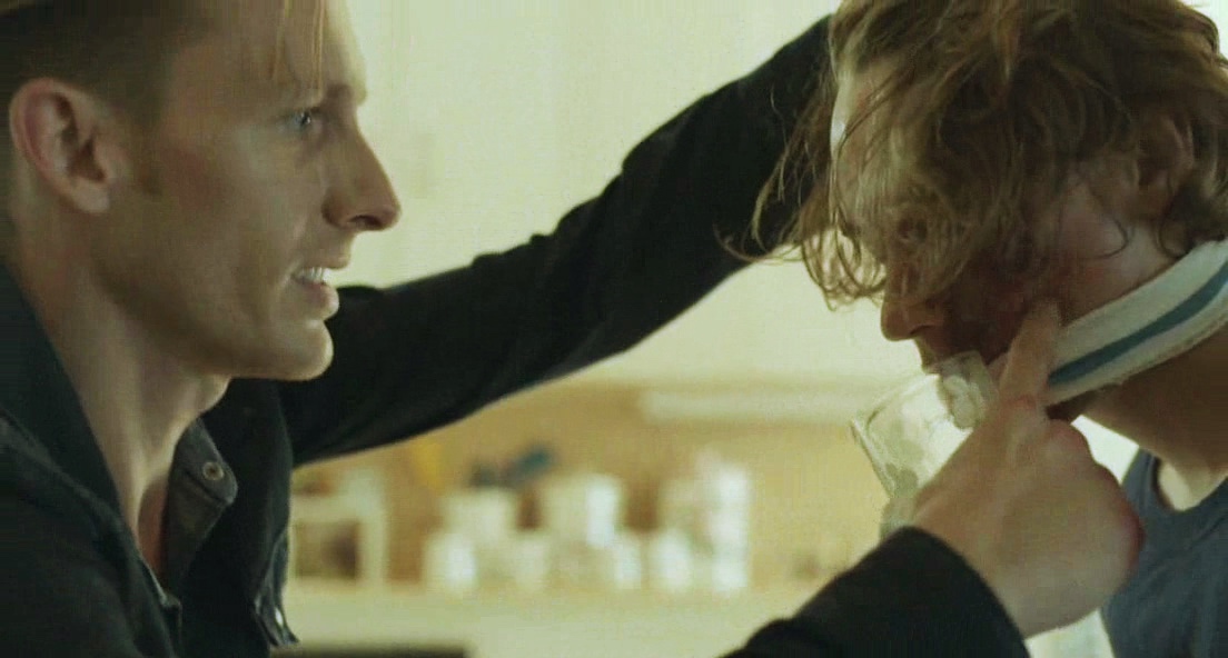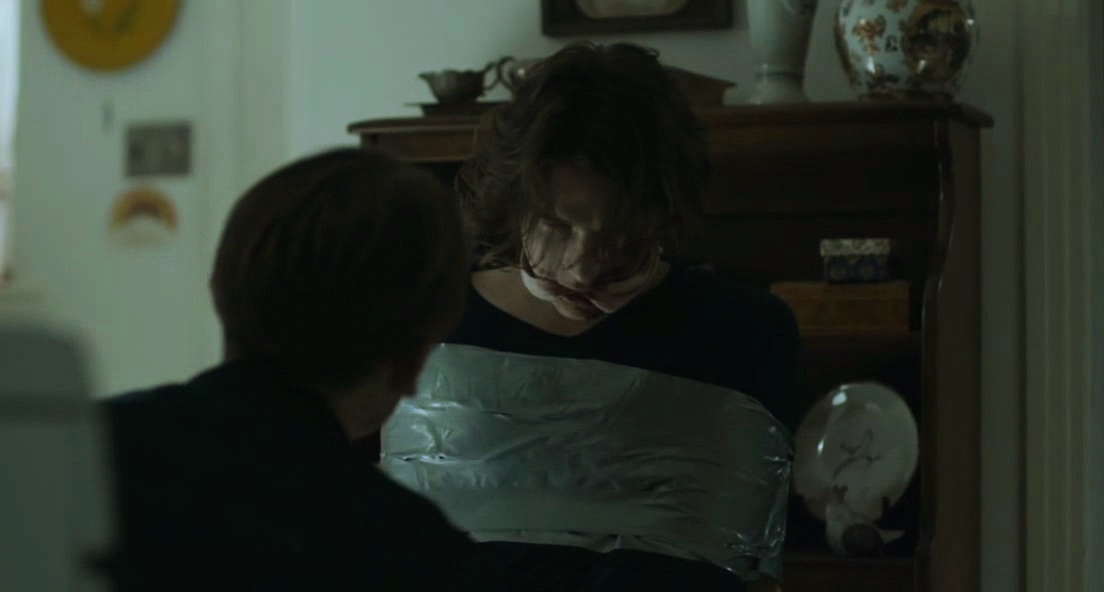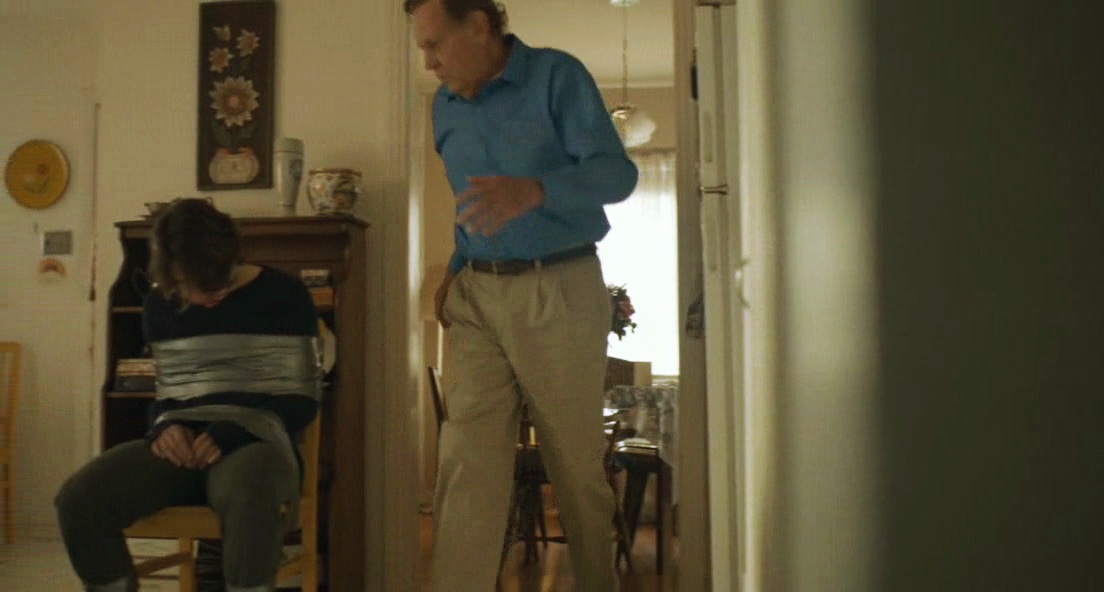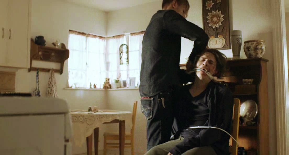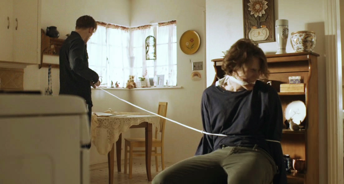 A violent con man takes a young man captive and slowly drains his bank account.