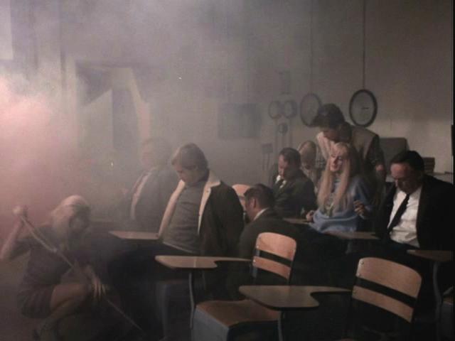 Solo and Illya (along with others, including character actor Henry Jones) are tied to desks at a university, and subjected to a marathon exam with a catch - one wrong answer and they're dead.