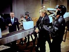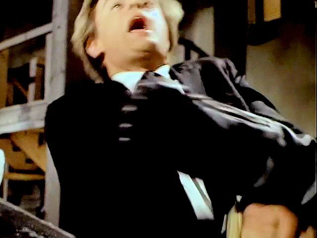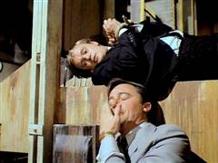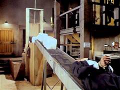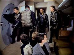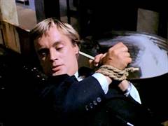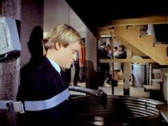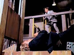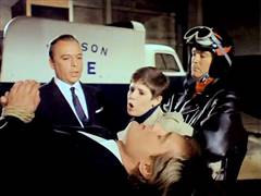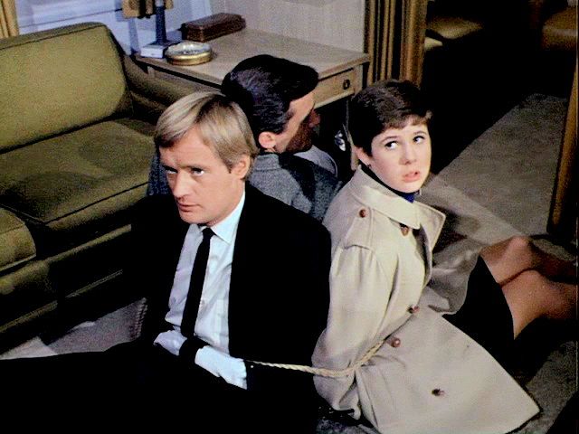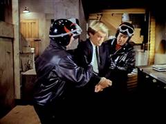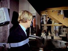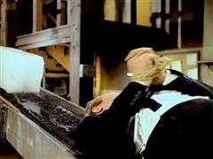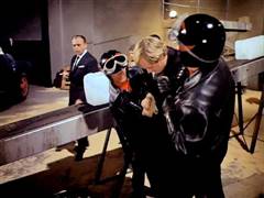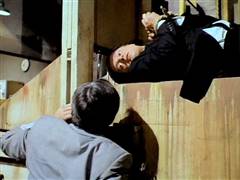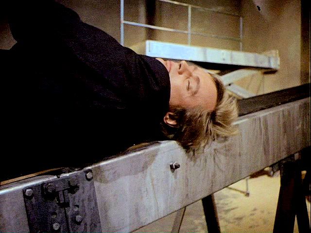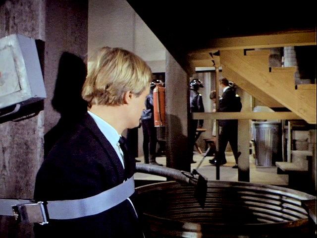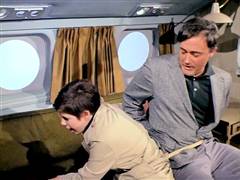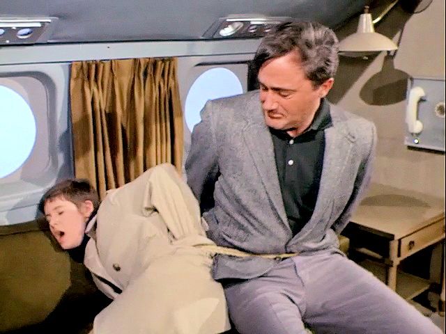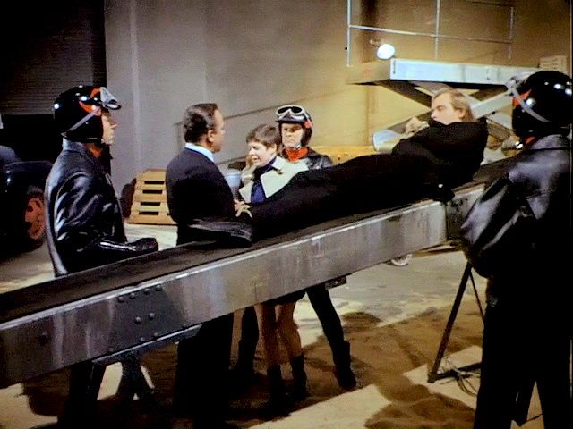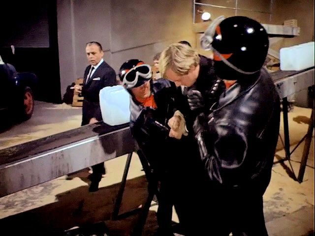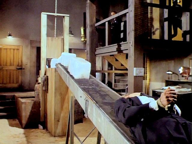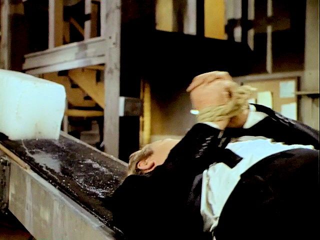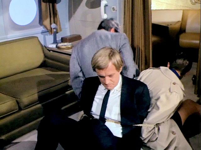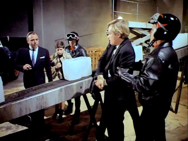 Illya and Solo are tied up on a plane that's about to crash. Later, Illya is about to be chopped up at an ice processing plant but is rescued by Solo.