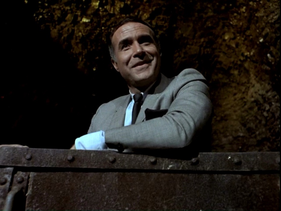Napoleon and this week's civilian are tied up in a mine shaft and rescued by a friendly jewel thief; later, they're all strapped to the mouths