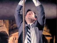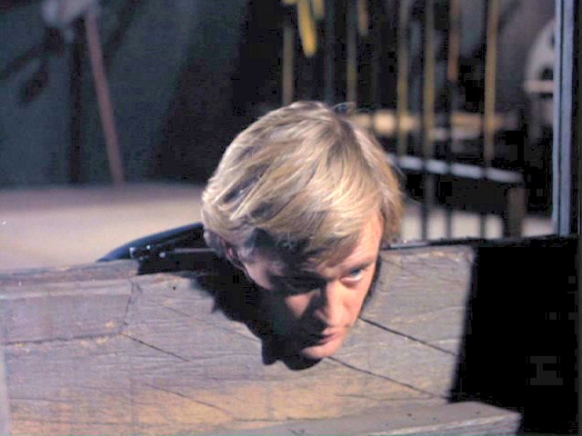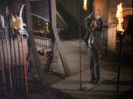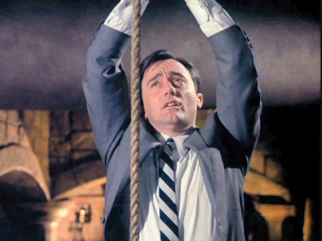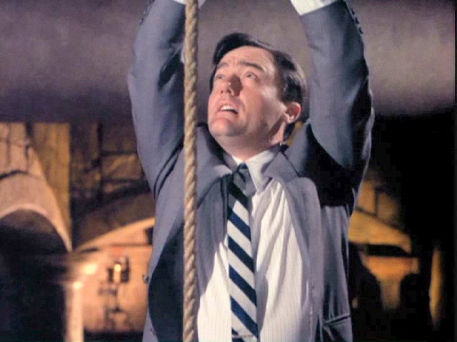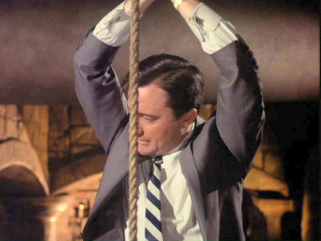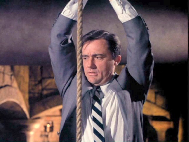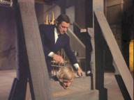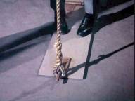Illya and Solo are set up in a trap where if Solo fails to hold the tension on the blade with his tied