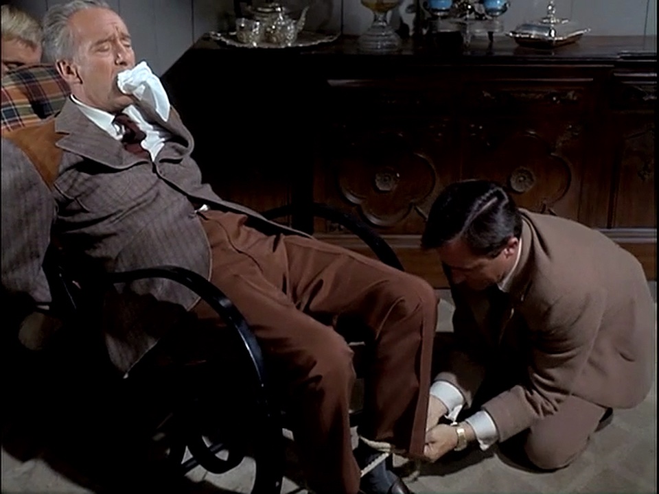Recurring villain G. Emory Partridge (Sanders) takes Solo and Illya captive in the Yukon.