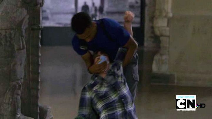 Jasper is tied up by the thieves, who eventually put one of his socks in his mouth as a gag. Meanwhile, Henry and Maggie