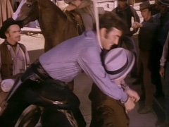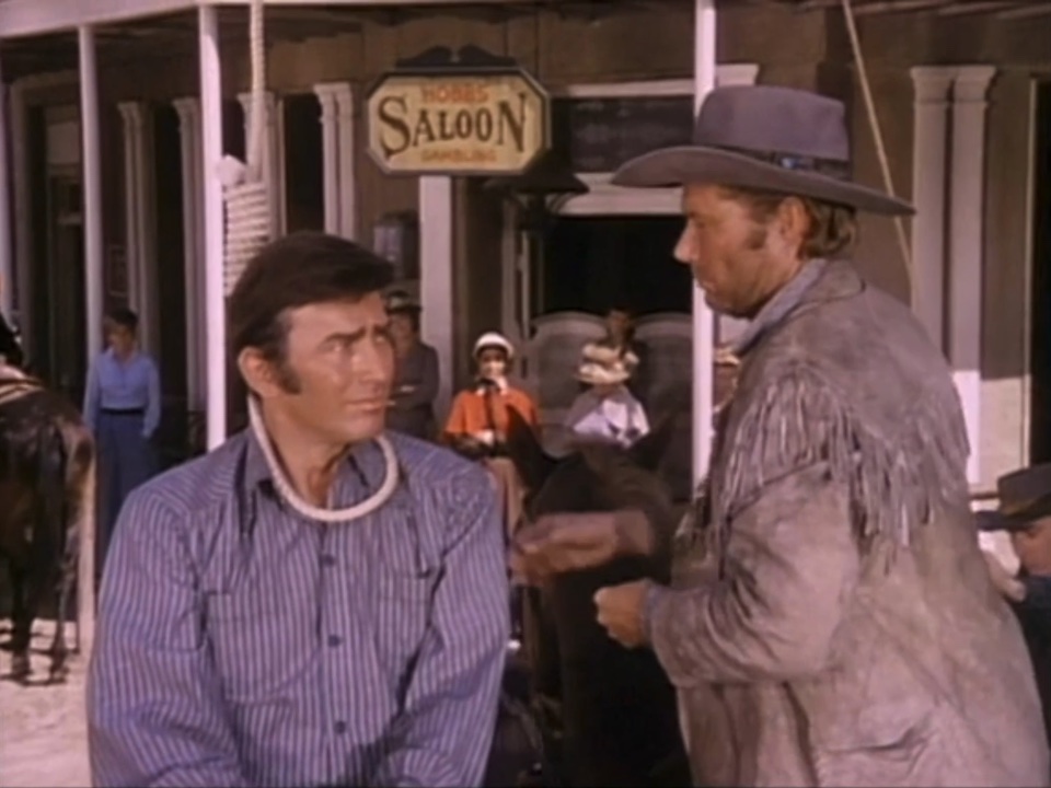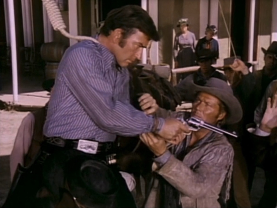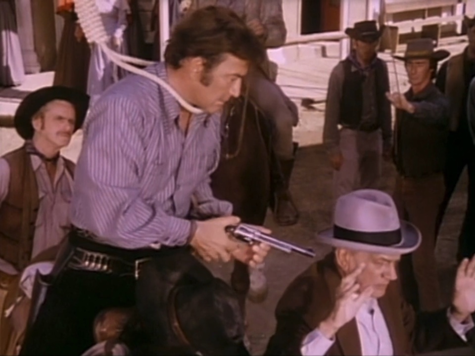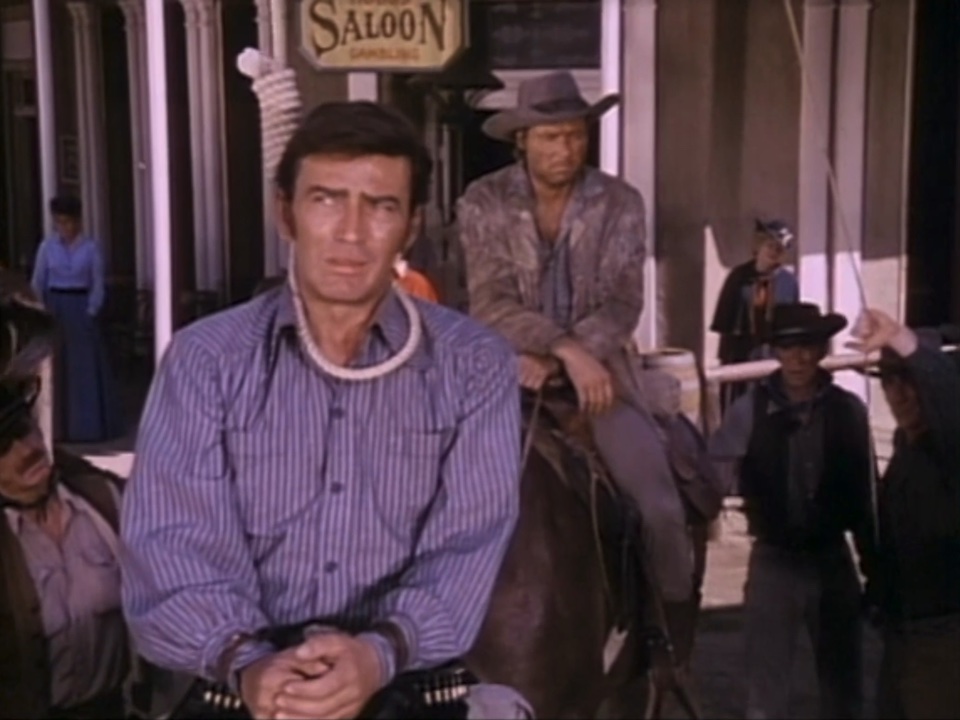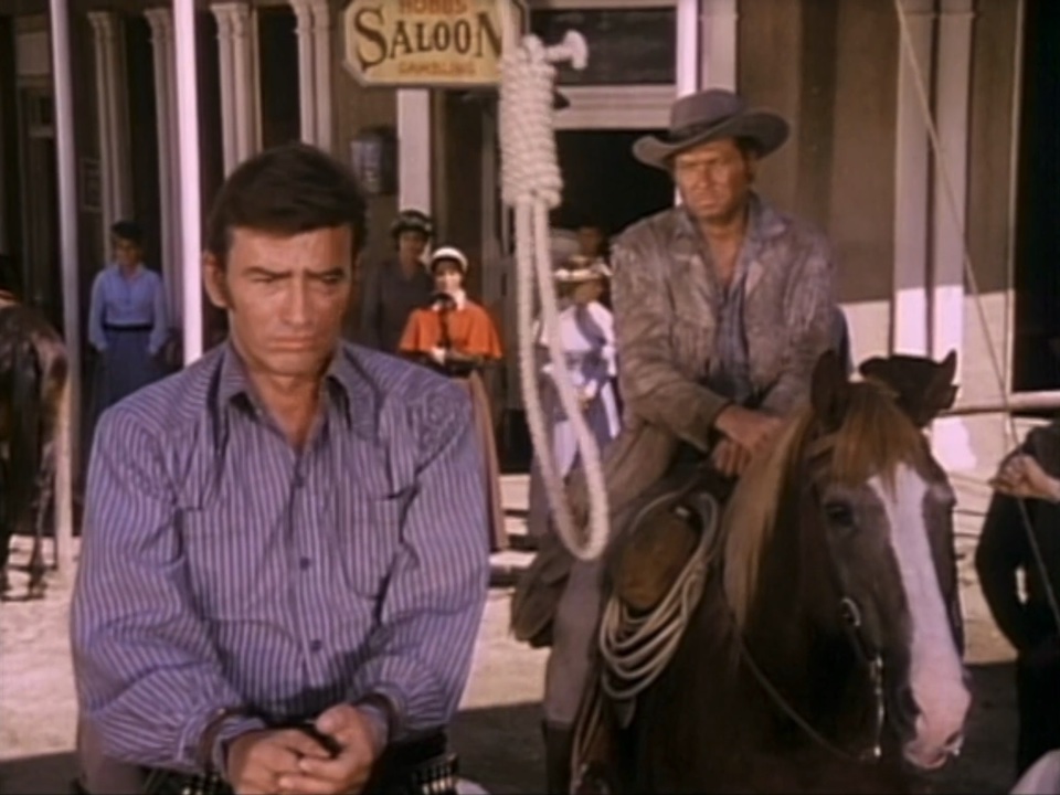 The Virginian escapes from an attempted hanging. This episode is from Season 9, when the series was running under the title The Men from Shiloh.