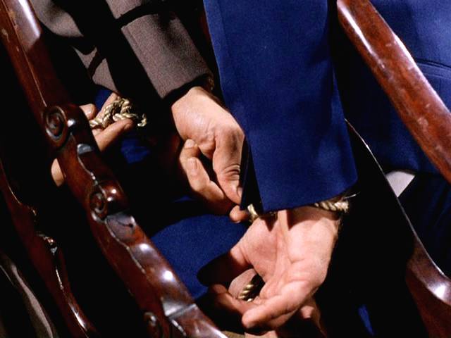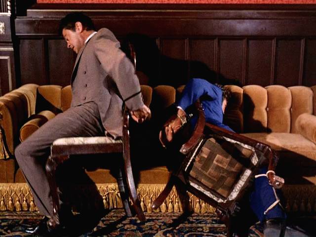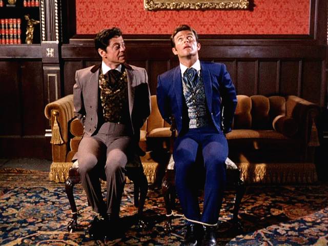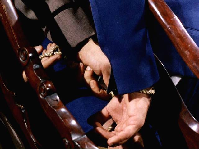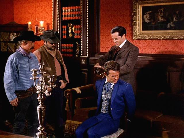 The villain subjects Jim and Artie to the old burn-down-the-place-when-a-candle-burns-through-a-rope routine. Artie saves the day by retrieving one of Jim's many hidden knives.