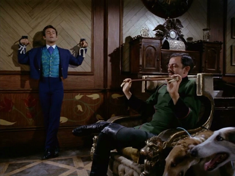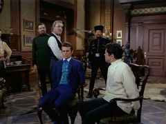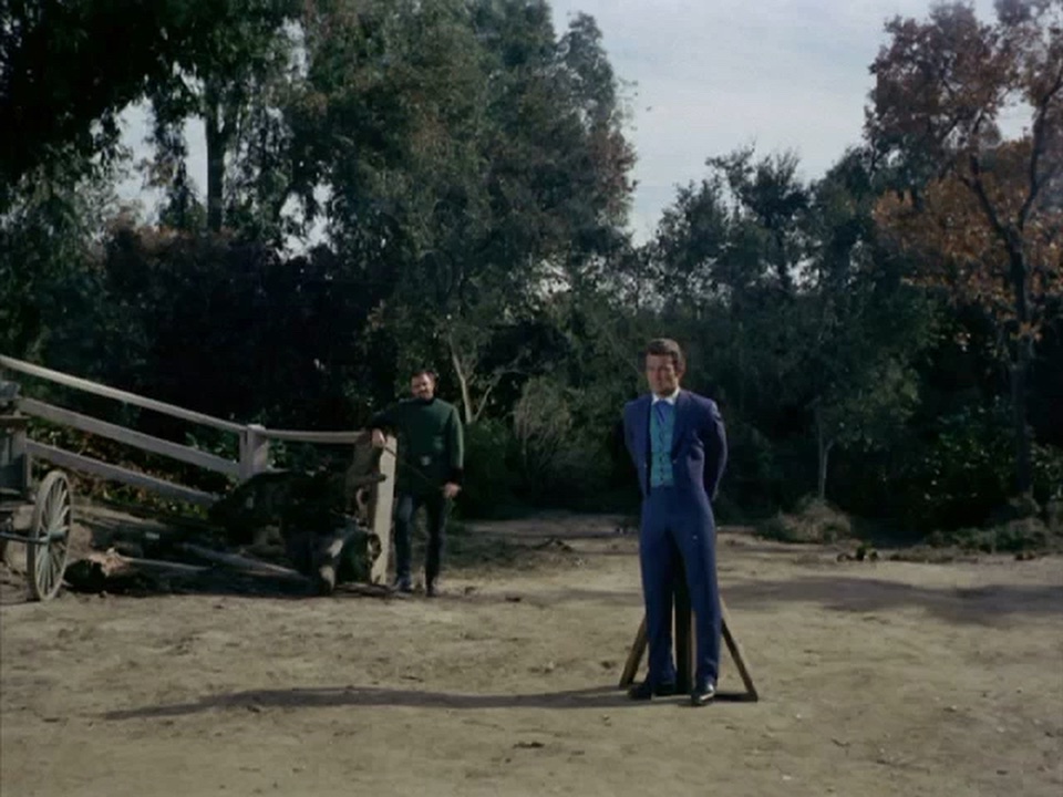 John Astin toys with a tied-up Jim and then captures Artie.