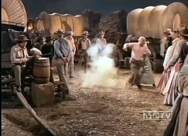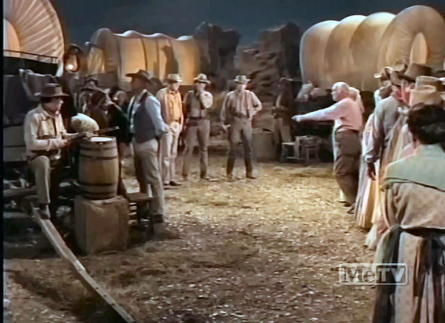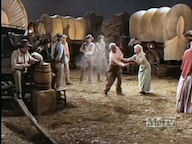 An outlaw gang posing as farmers hijacks the train, tying up several of the men on the train as hostages.