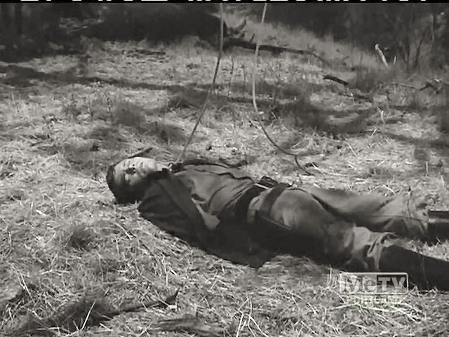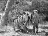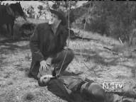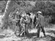 A young man is hunted by a gang after killing one of them. They attempt to hang him, but are interrupted by a posse, and they capture him again later.