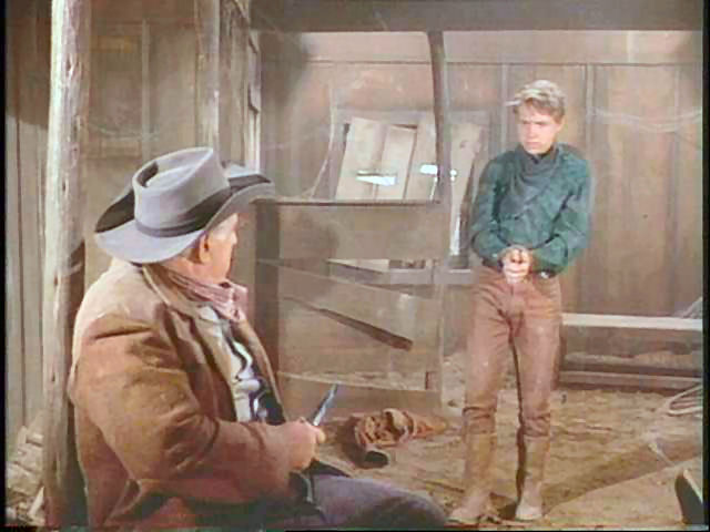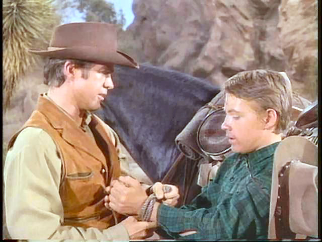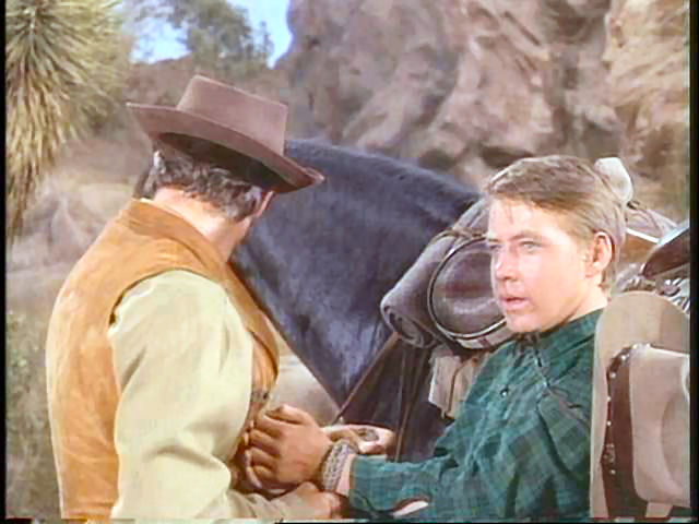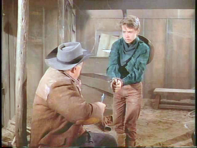 This was one of my favorite scenes when I was a kid. After witnessing a robbery, Burns is taken hostage by Clu Gulager, who becomes protective of him. Eventually, Clu's gruff partner, who doesn't like having the young man around, unties him.