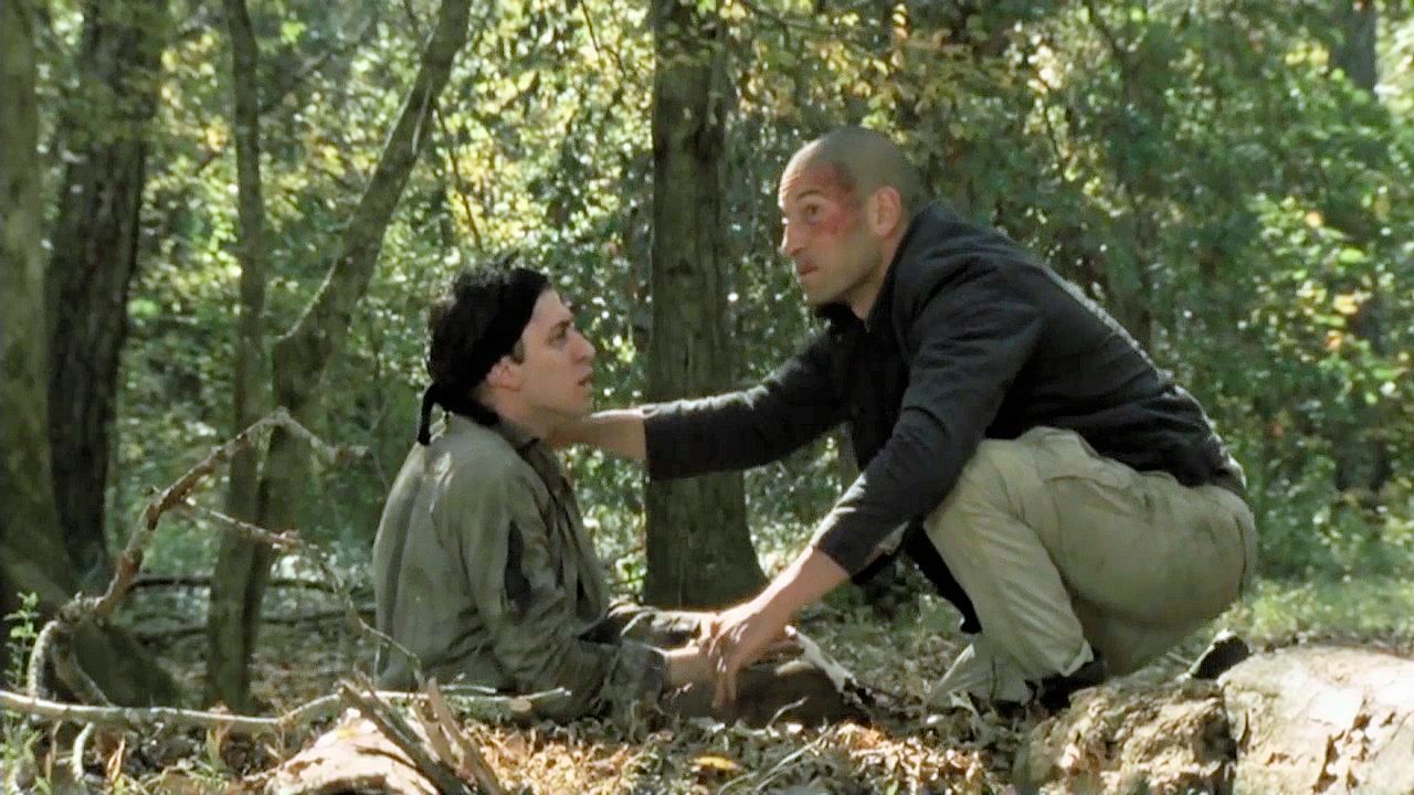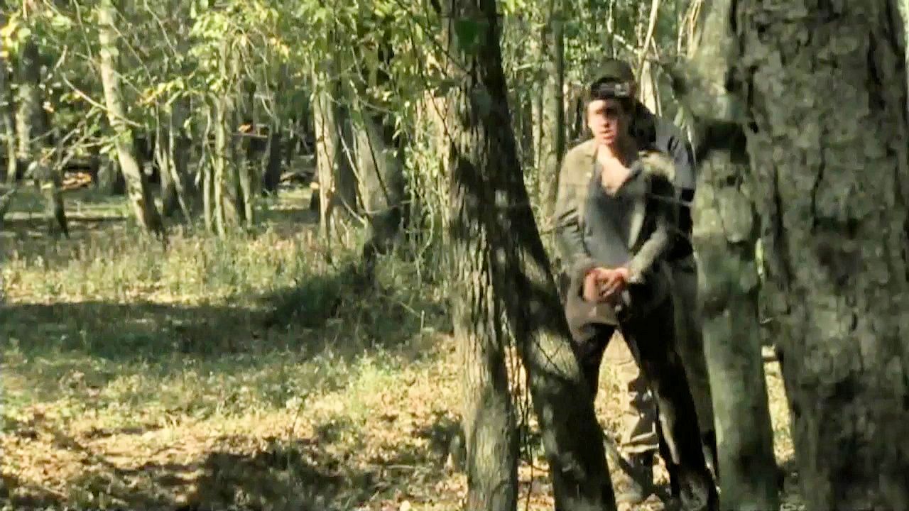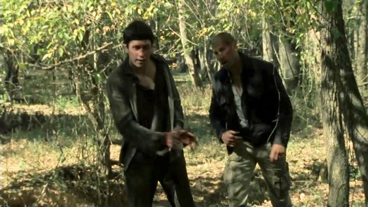 Shane sneaks the captive Randall out of the barn and takes him into the woods.