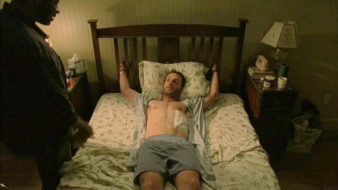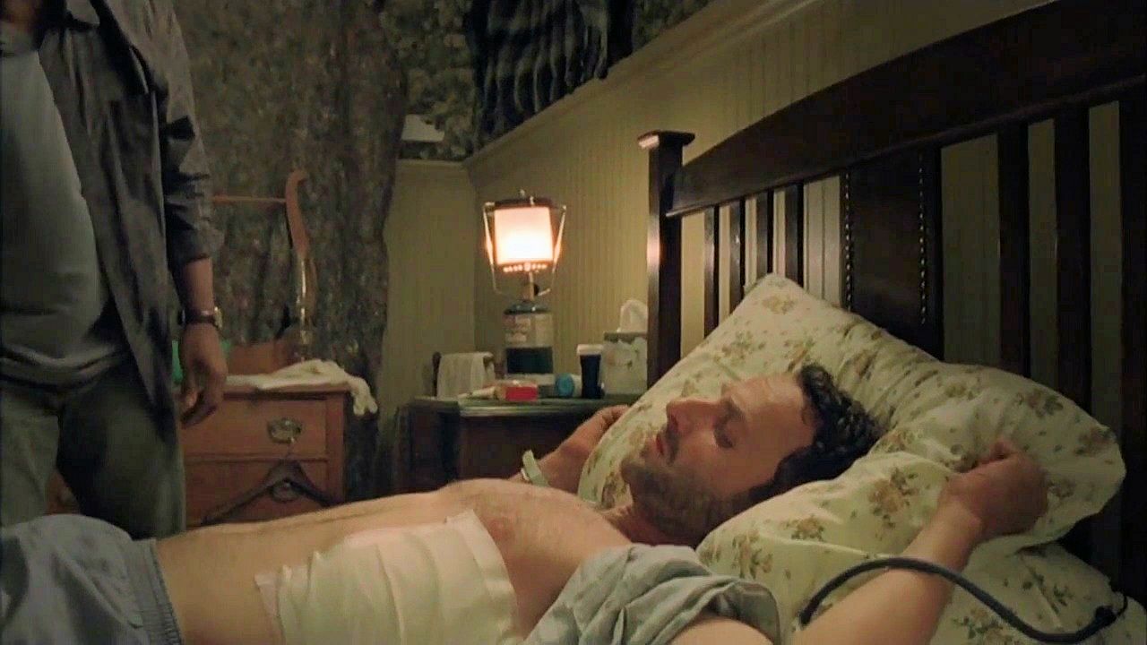 Rick is tied to a bed by a man who's afraid he might be a zombie.