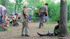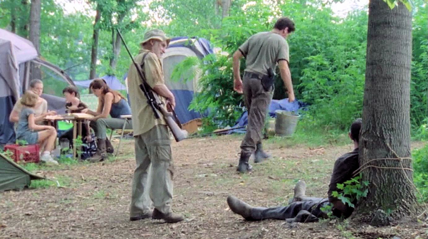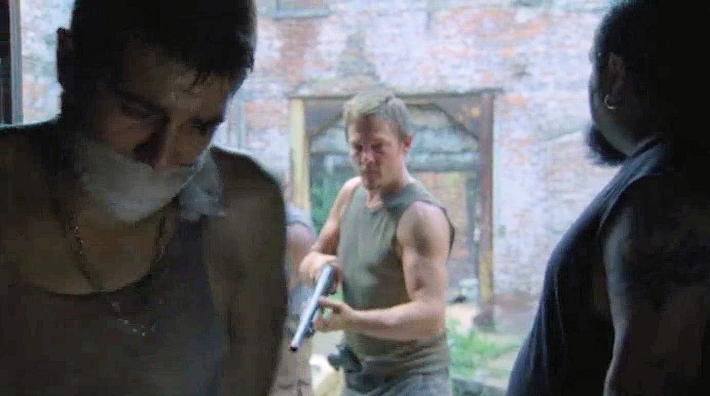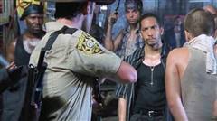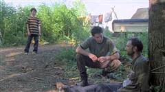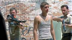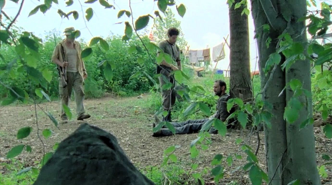 Jim (Rothenberg) is tied up at the survivors' camp; when Glenn (Yeun) is kidnapped by the Vatos gang, Rick and Daryl take Miguel (Guajardo) hostage.