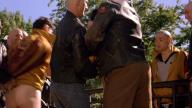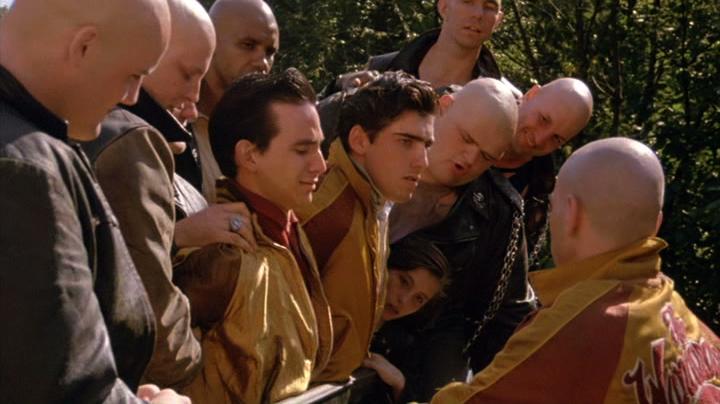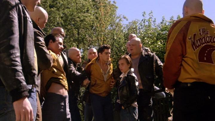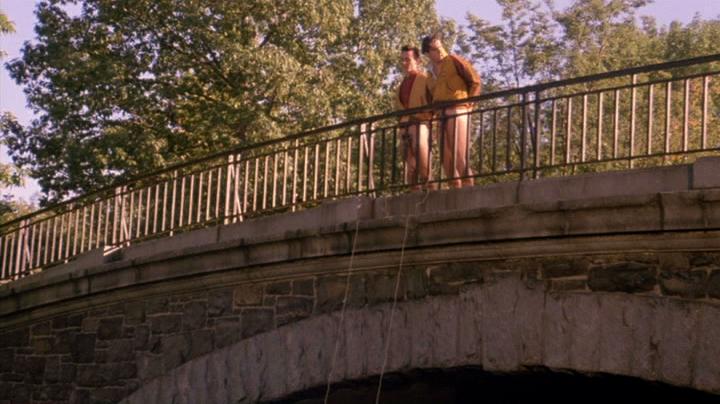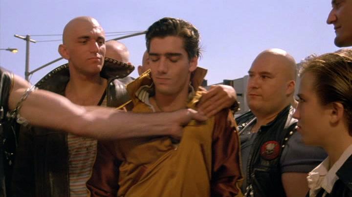 When Joey (Friedrich) insults the Baldies, they tie up him and Richie, and drag them to a nearby bridge for the old "rock and cock" trick.