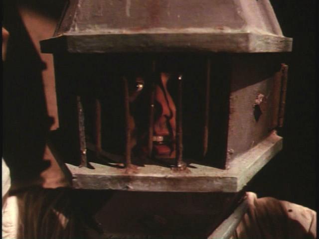In this sequel, Zach Galligan somehow ends up stumbling through time. He encounters Bruce Campbell playing a professor, and then in medieval times, he's tied into a head cage.