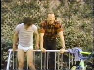 Wyatt's older brother ties him to a bike rack in his underwear.