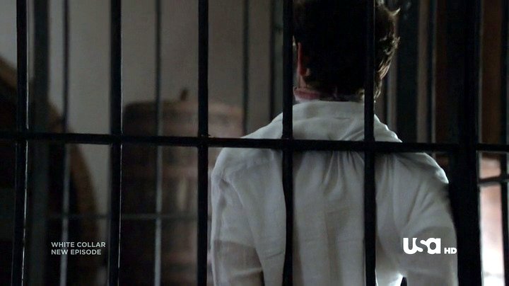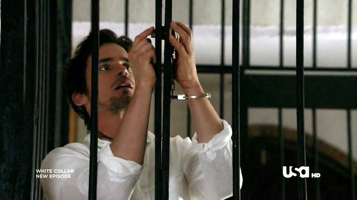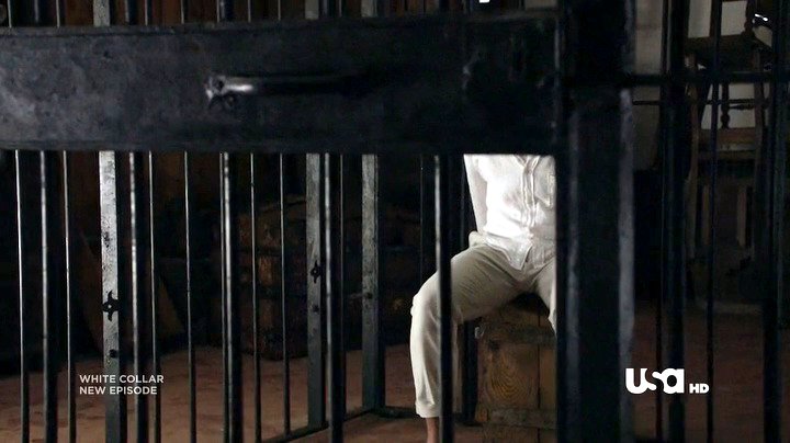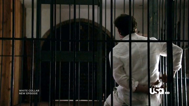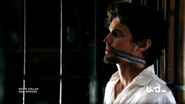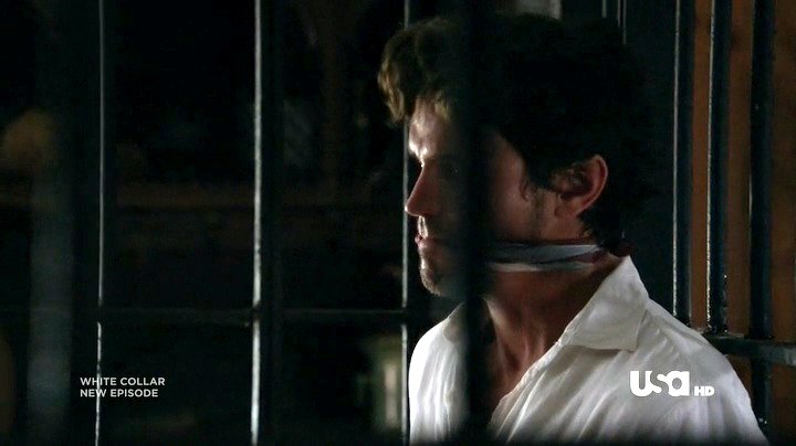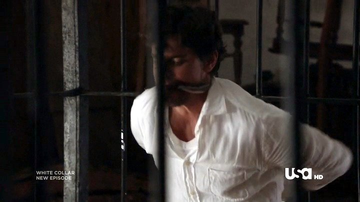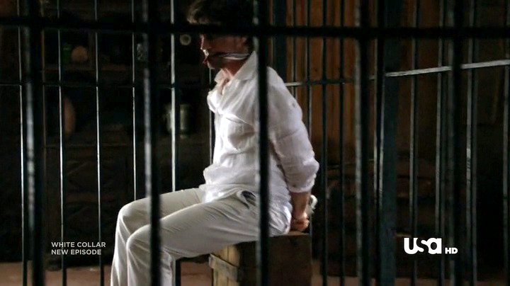 Neal has been captured by Collins, and placed in a cell handcuffed and gagged. Being Neal, he escapes from the