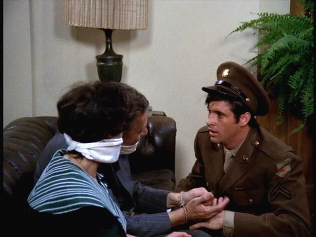 Nazis enlist the aid of Cpl. Ames (Robert Hays) by kidnapping his parents (uncredited), and he helps them capture Major Trevor and other officers.