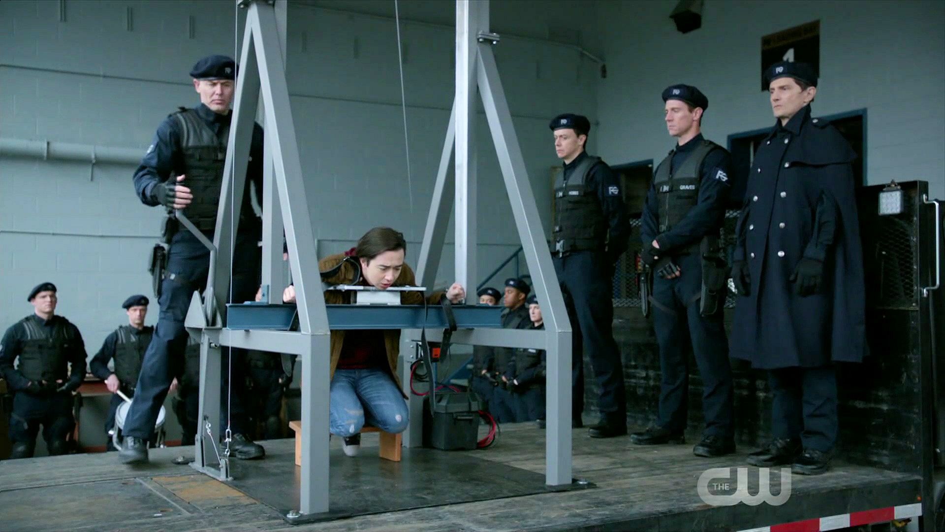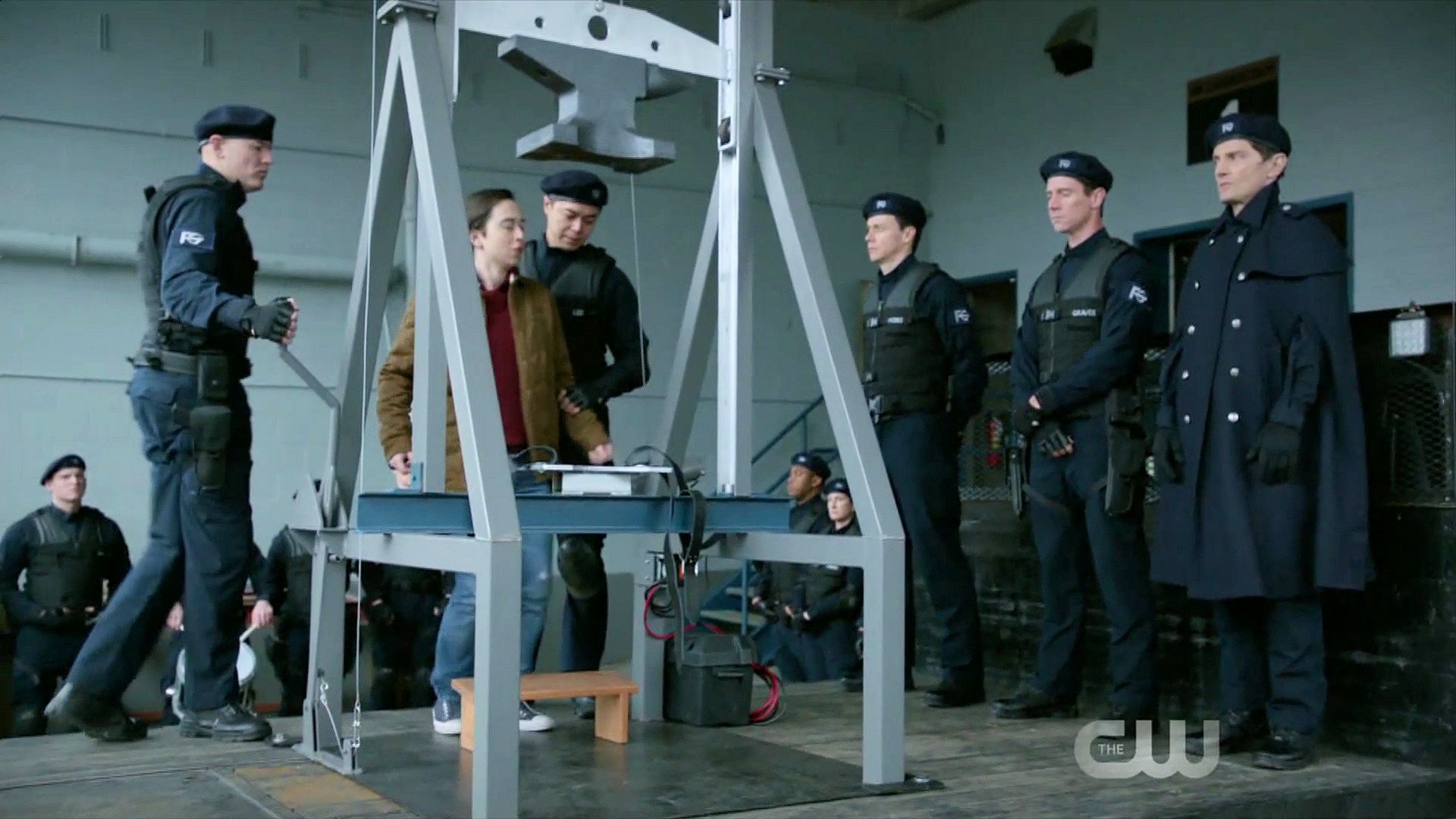 Curtis is sent to the guillotine, but is saved at the last minute by Levon's arrival, claiming to be Renegade.